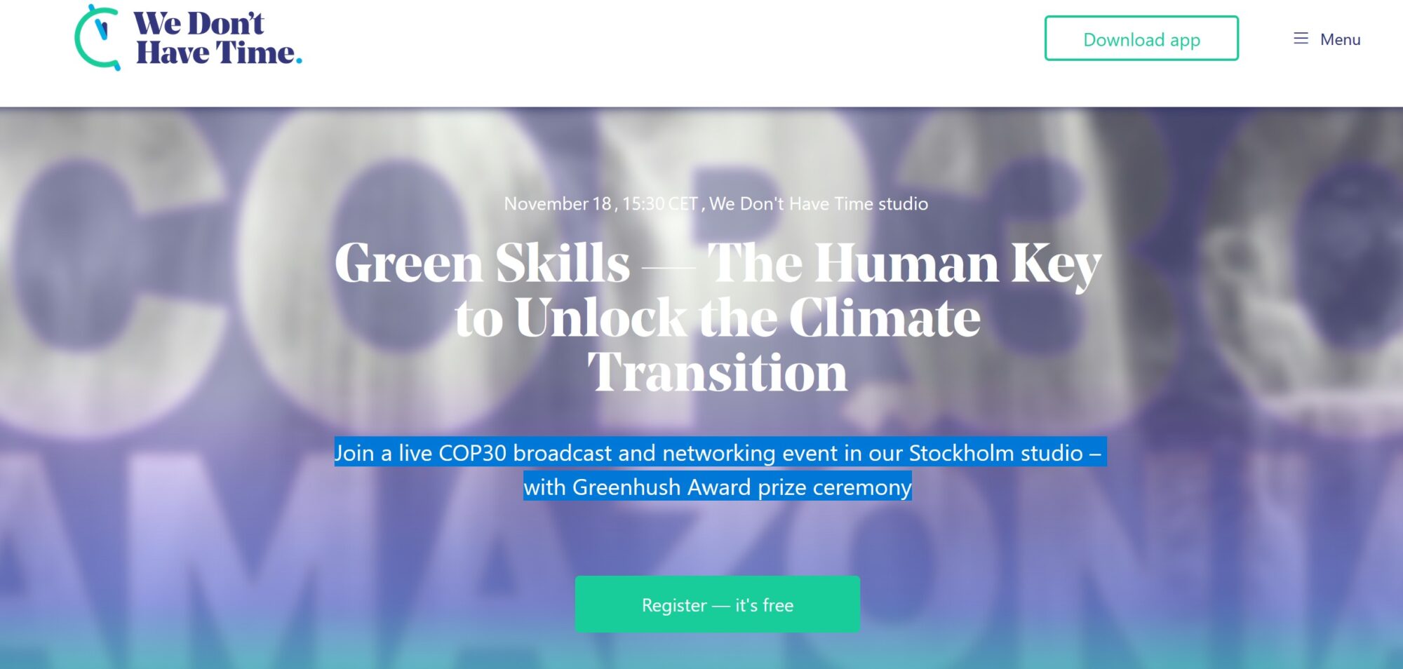 Länk till anmälan: https://www.wedonthavetime.org/events/greenskills