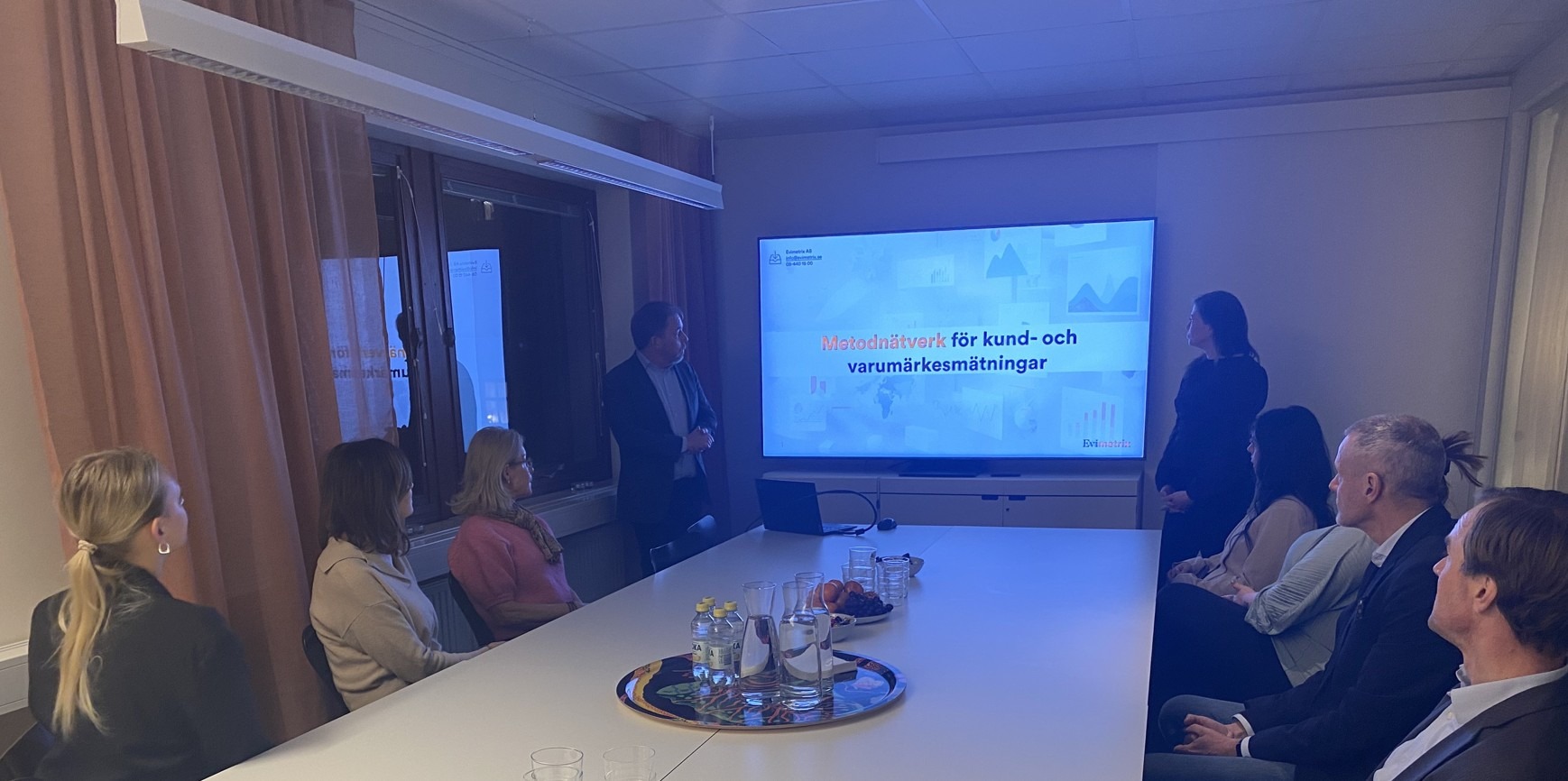 Nätverksträff hos företaget Evimetrix med nätverksledarna Alf Brydolf-Berg och Matilda Lindblom.